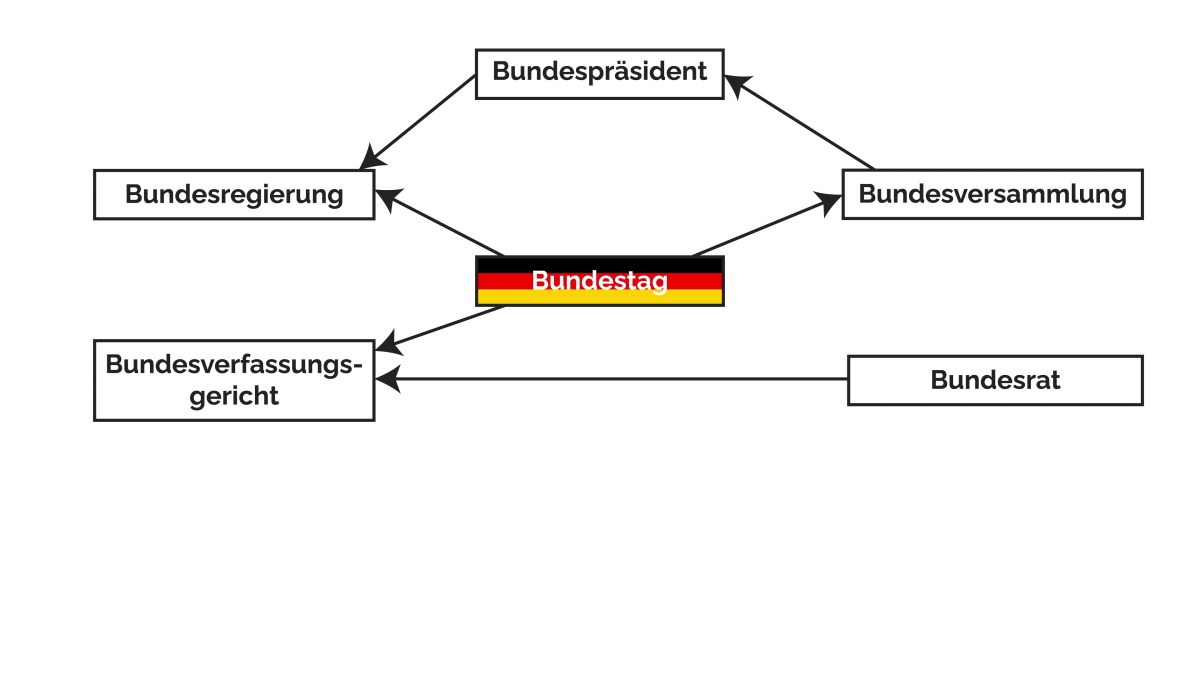 Die mindestens 598 Abgeordneten (durch Überhang- und Ausgleichmandate sind es meistens mehr) beschließen die Gesetze und bilden somit das gesetzgebende Organ – oder: die Legislative (von lat. „legis latio“ -> „Beschließung des Gesetzes“), also einer der drei Gewalten Judikative, Legislative und Exekutive. Gleichzeitig ist es die einzige bundesweite Institution, die direkt von den Bürgern gewählt wird. Dazu gibt es die Bundestagswahlen, welche alle 4 Jahre stattfinden.
