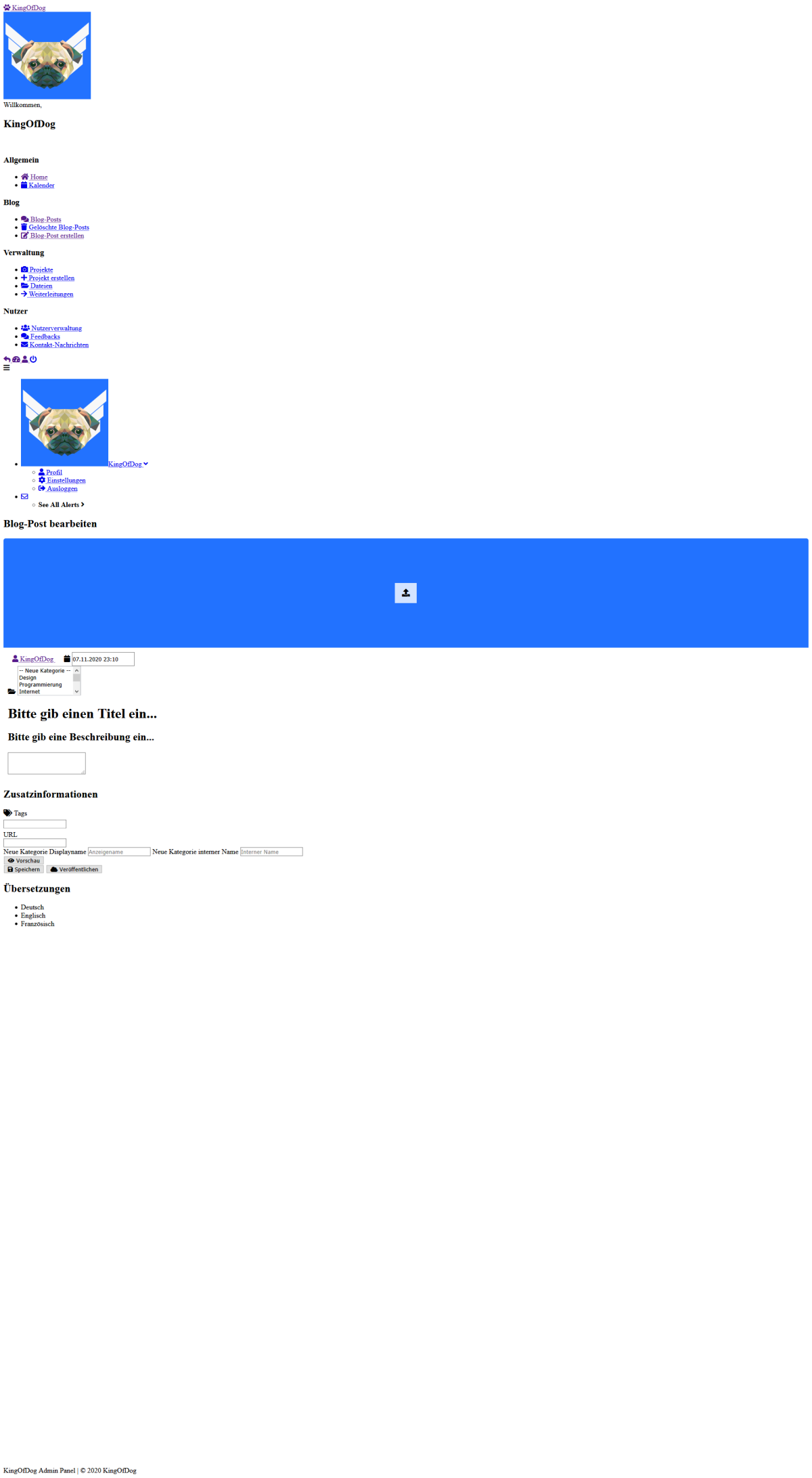 Nach etlichen Monaten (und somit einem Vielfachen der ursprünglich antizipierten Dauer dieses Projekts) veröffentlichte ich eine Website, anfangs noch unter der Domain kingofdog.eu erreichbar, später ausschließlich über kingofdog.de.